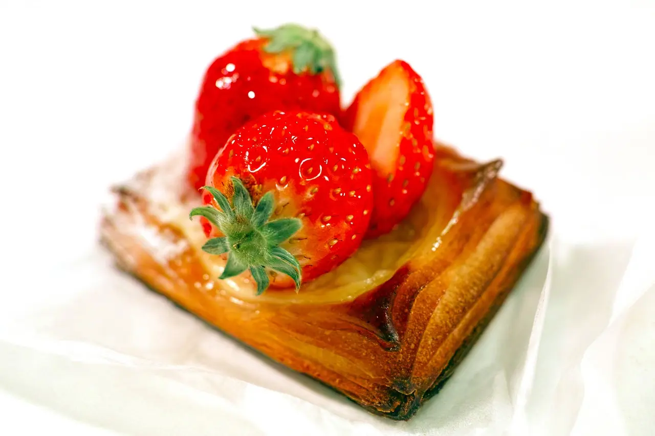 鮮やかな赤色が美しい新鮮なイチゴを主役にした和菓子です。ぷるんとした果肉と甘酸っぱい味わいが絶妙なバランスで調和し、心と舌をくすぐる極上の一品となっております。
